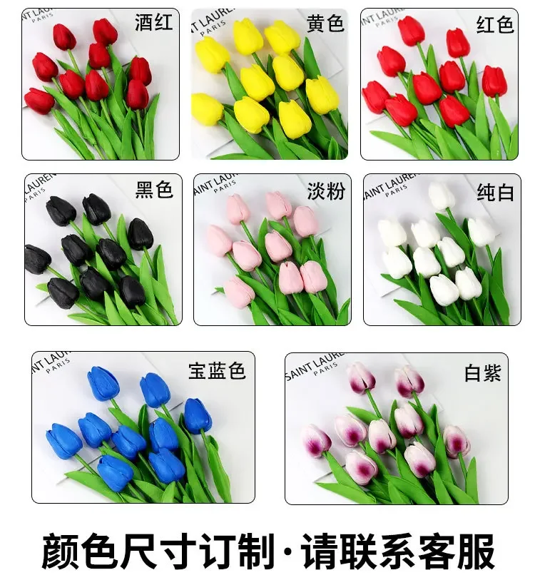 Add elegance and freshness to any setting with this 34cm real touch PU tulip stem. Designed to look and feel like a natural tulip, it features vibrant colors and lifelike texture, making it a perfect choice for weddings, home interiors, or garden arrangements. Whether used individually in a slim vase or combined into a larger bouquet, this artificial flower brings lasting beauty without the need for care or maintenance, making it a timeless addition to your décor.
